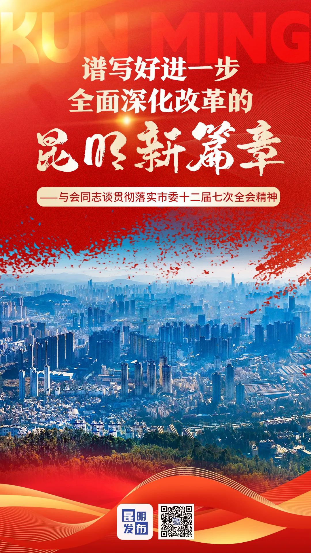 改革潮涌风正劲,奋楫扬帆启新程。 8月21日,中国共产党昆明市第十二届委员会第七次全体会议举行,审议通过了《中共昆明市委贯彻落实〈中共中央关于进一步全面深化改革、推进中国式现代化的决定〉的实施意见》,对我市进一步全面深化改革作出安排。 与会同志一致表示,要坚持以习近平新时代中国特色社会主义思想为指导,全面贯彻落实党的二十届三中全会、省委十一届六次全会精神,自觉肩负起进一步全面深化改革的时代责任,自觉当好进一步全面深化改革的促进派、实干家,锐意进取、开拓创新、真抓实干,不断开创改革发展新局面,为奋力推动中国式现代化昆明实践迈出坚实步伐作出新的更大贡献。