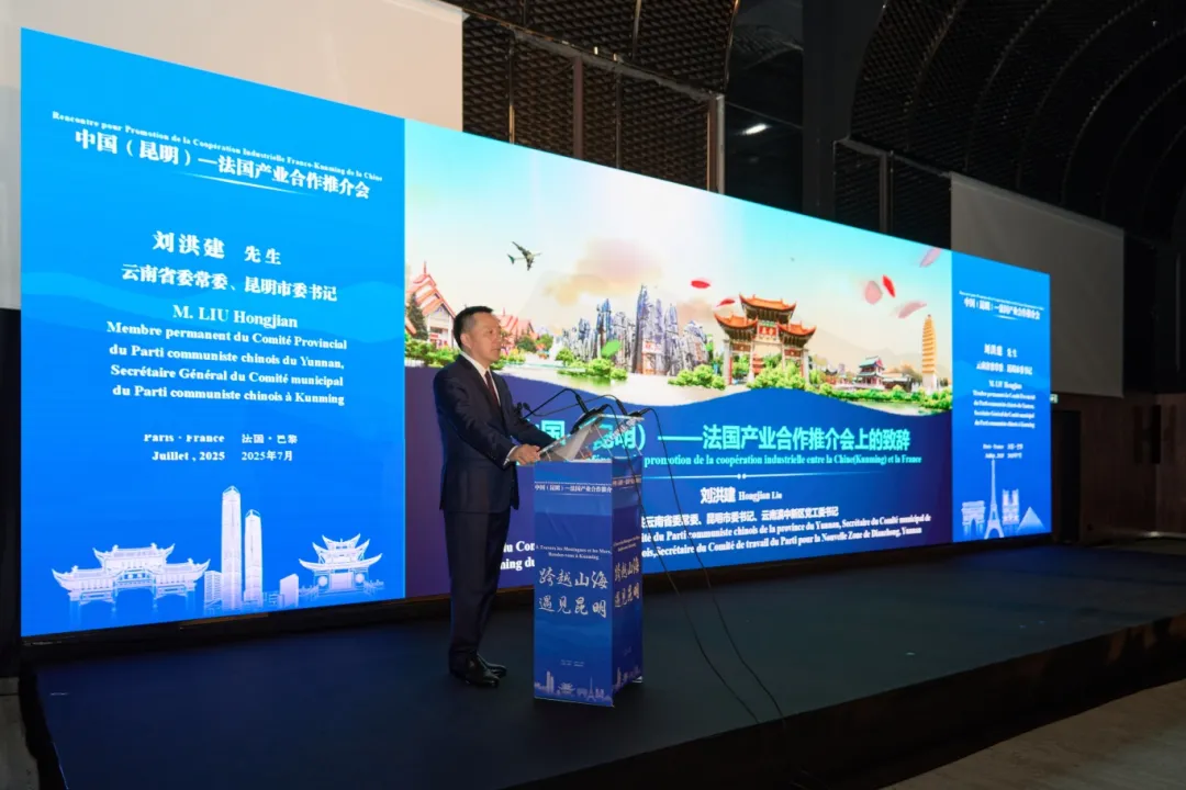 刘洪建出席中国(昆明)—法国产业合作推介会并致辞。