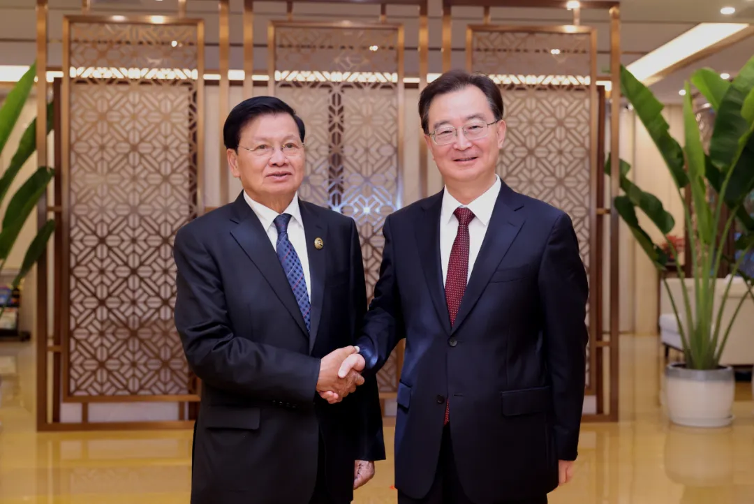 9月4日,省委书记王宁在西双版纳州景洪市会见来华出席2025年上海合作组织峰会和纪念中国人民抗日战争暨世界反法西斯战争胜利80周年活动并进行工作访问的老挝人民革命党中央总书记、国家主席通伦。