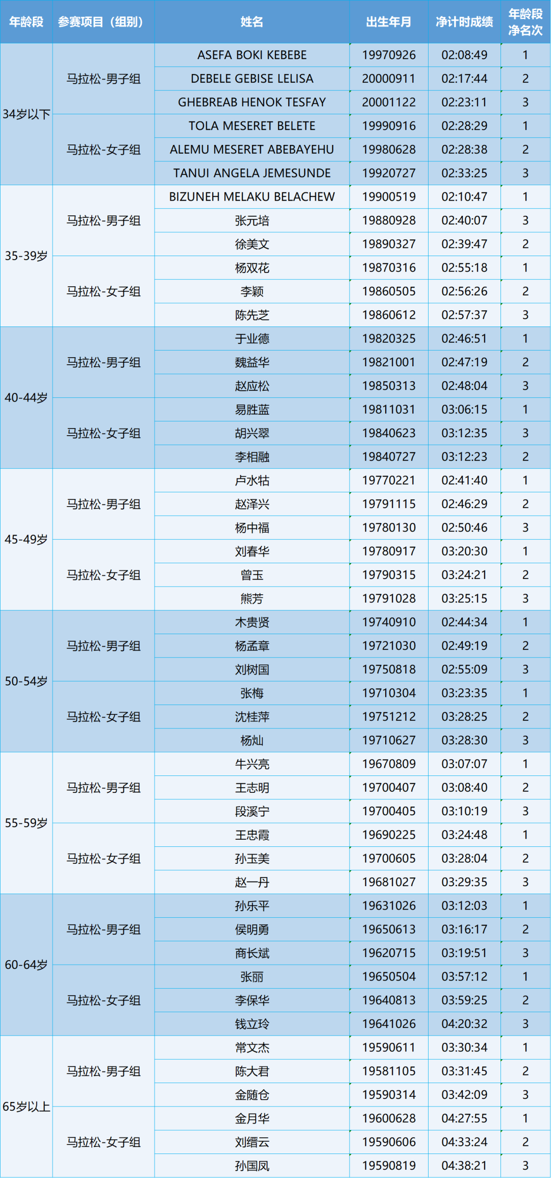 马拉松项目年龄组奖今日公布